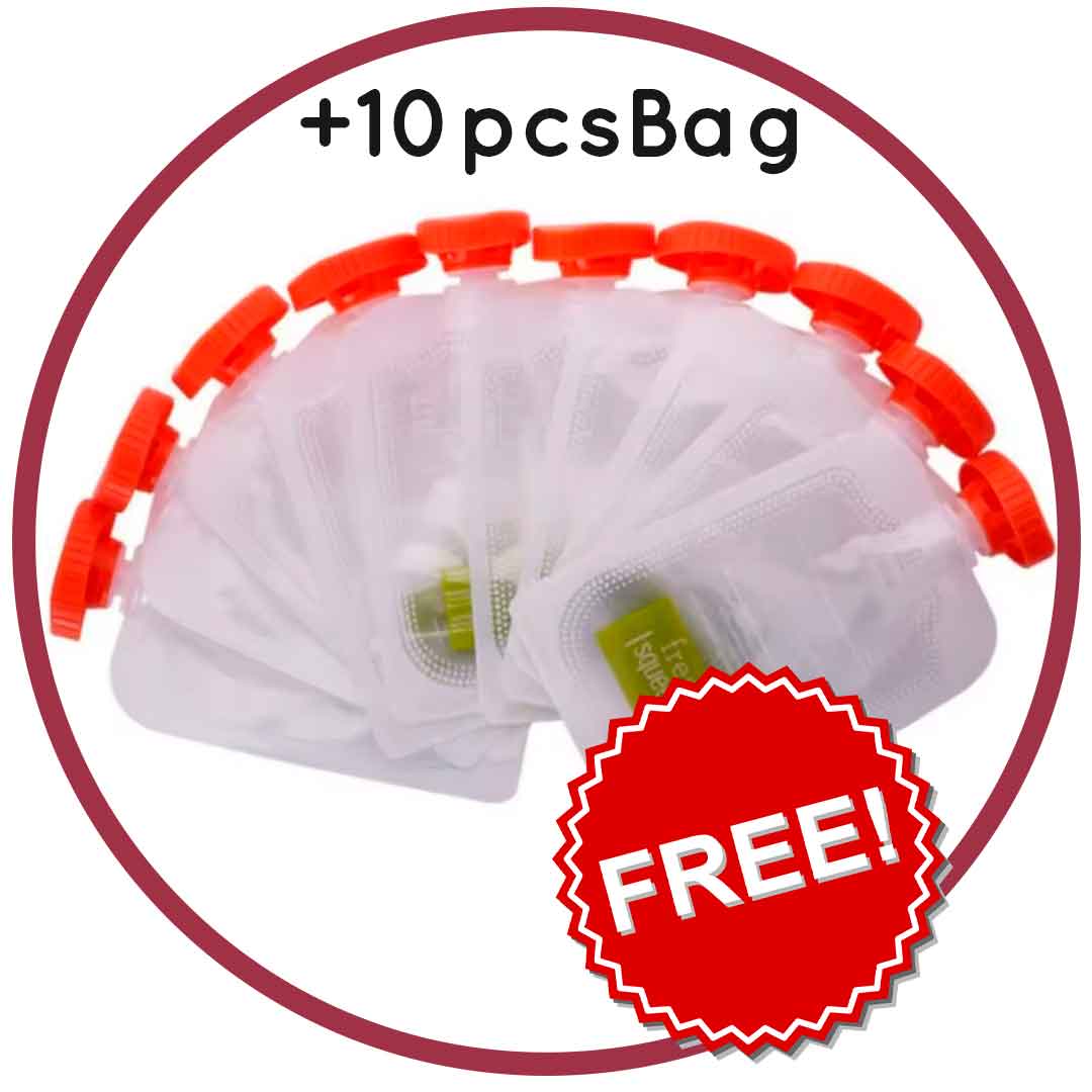 +10 High-Quality Reusable Pouches (FREE) – leak-proof, freezer-safe, and eco-friendly.